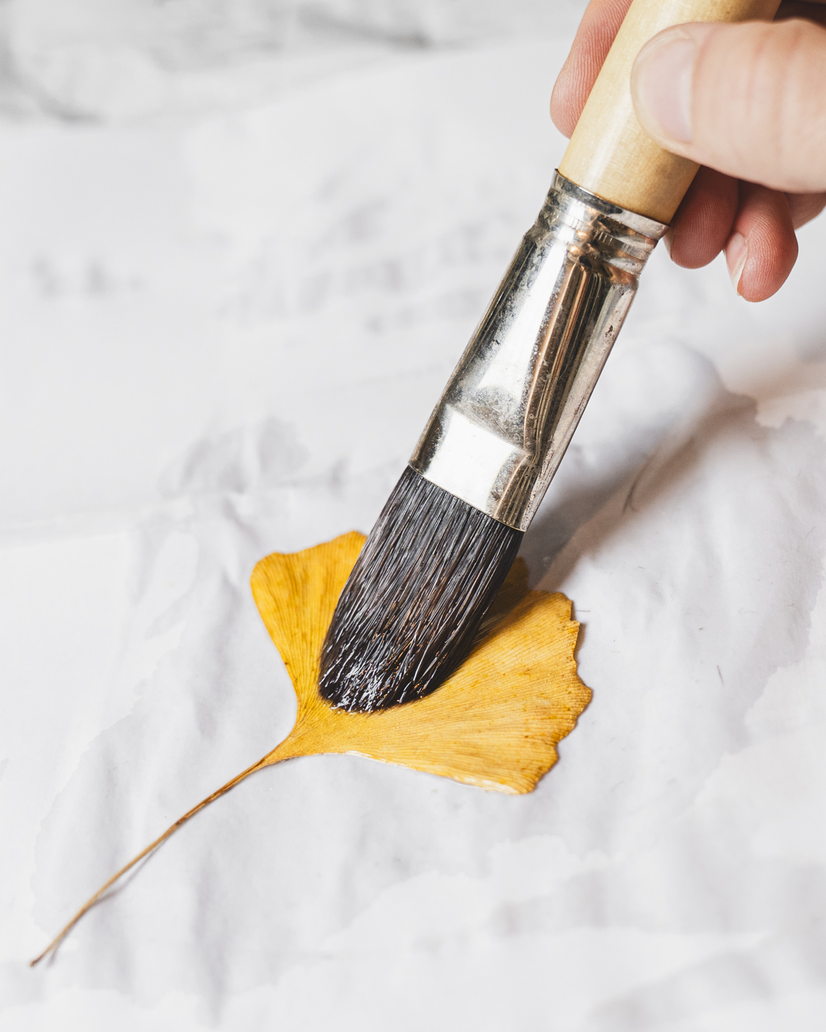 Analog print on stabilized ginkgo biloba leaf